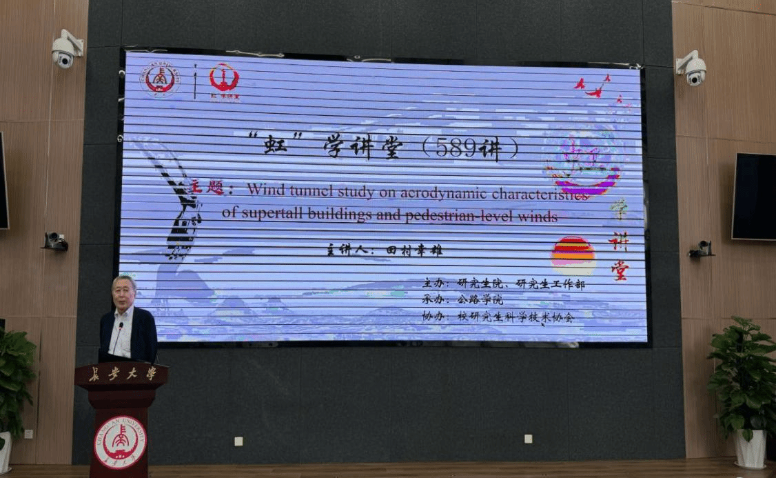 10月26日上午,由研究生院、研究生工作部主办,公路学院承办,校研究生科学技术协会协办的“虹”学讲堂第589讲在北校区师生服务大厅第二报告厅举办。中国工程院外籍院士田村幸雄、香港科技大学首席工程师苏权科、中交公路规划设计院业务总监吴明远分别作题为“Wind tunnel study on aerodynamic characteristics of supertall buildings and pedestrian-level winds”“海上人居工程技术体系与海洋工程创新任务”“超大跨悬索桥抗风技术的实践与探索”的报告,会议由KY.COM公路学院教授兼重庆大学教授刘永健主持,相关学院共150余名师生参加讲座。