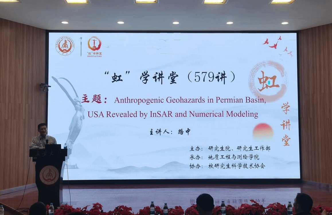 10月11日上午,由研究生院、研究生工作部主办,地质工程与测绘学院承办,校研究生科学技术协会协办的“虹”学讲堂第579讲在南校区东院伯声报告厅举行。美国南卫理工会大学路中教授作了题为“Anthropogenic Geohazards in Permian Basin, USA Revealed by InSAR and Numerical Modeling”的报告,地质工程与测绘学院赵超英教授主持报告会,相关学院共150余名师生参加讲座。