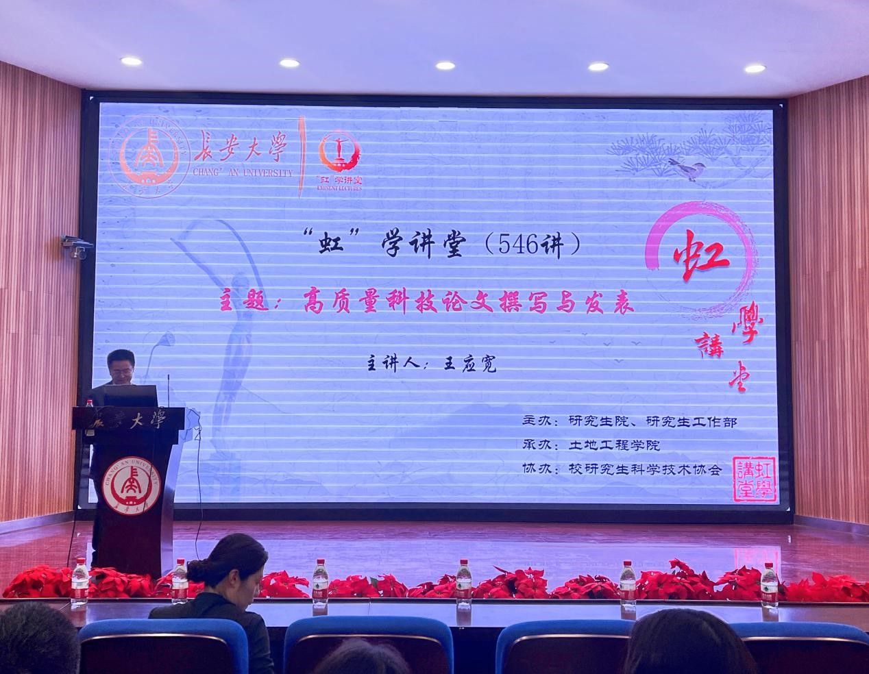 4月17日下午,由研究生院、研究生工作部主办,土地工程学院承办,校研究生科学技术协会协办的“虹”学讲堂第546讲在南校区东院伯声报告厅举办。农业农村部规划设计研究院王应宽研究员作了题为“高质量科技论文撰写与发表”的报告,土地工程学院卫新东教授主持报告会,相关学院共180余名师生参加讲座。