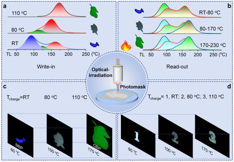 荧光高端智能防伪材料是解决目前全球性伪造问题的一个重要研究方向,张翔宇团队长期致力于荧光长余辉发光材料的研究,发表的研究成果通过掺杂构建局部深陷阱和增加深陷阱填充能力的策略,设计并开发了一种新型多波段NaGdGeO4:Pb,Tb长余辉存储荧光粉,不仅展现出多模白光发射,而且通过记忆陷阱的充能温度,实现对环境温度的智能响应和在单个荧光粉记录层上实现高通量多通道的荧光防伪。本研究不仅对余辉荧光机制提供了进一步的认识,也为构建智能响应防伪材料打开了新的应用领域。