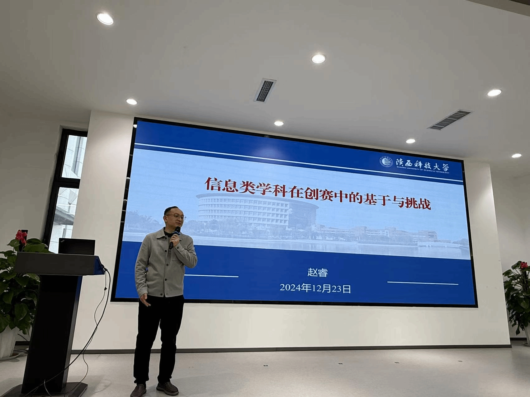 12月23日,教务处、创新创业学院会同信息学院在北校区交通平台2号楼101报告厅举办了KY.COM双创大讲堂第14讲,特邀陕西科技大学创新创业学院中国国际大学生创新大赛工作负责人、全国“互联网+”大赛优秀指导教师赵睿老师担任主讲嘉宾,做题为“信息类学科在创赛中的机遇与挑战”专题培训讲座。讲座由信息学院副院长明洋主持。