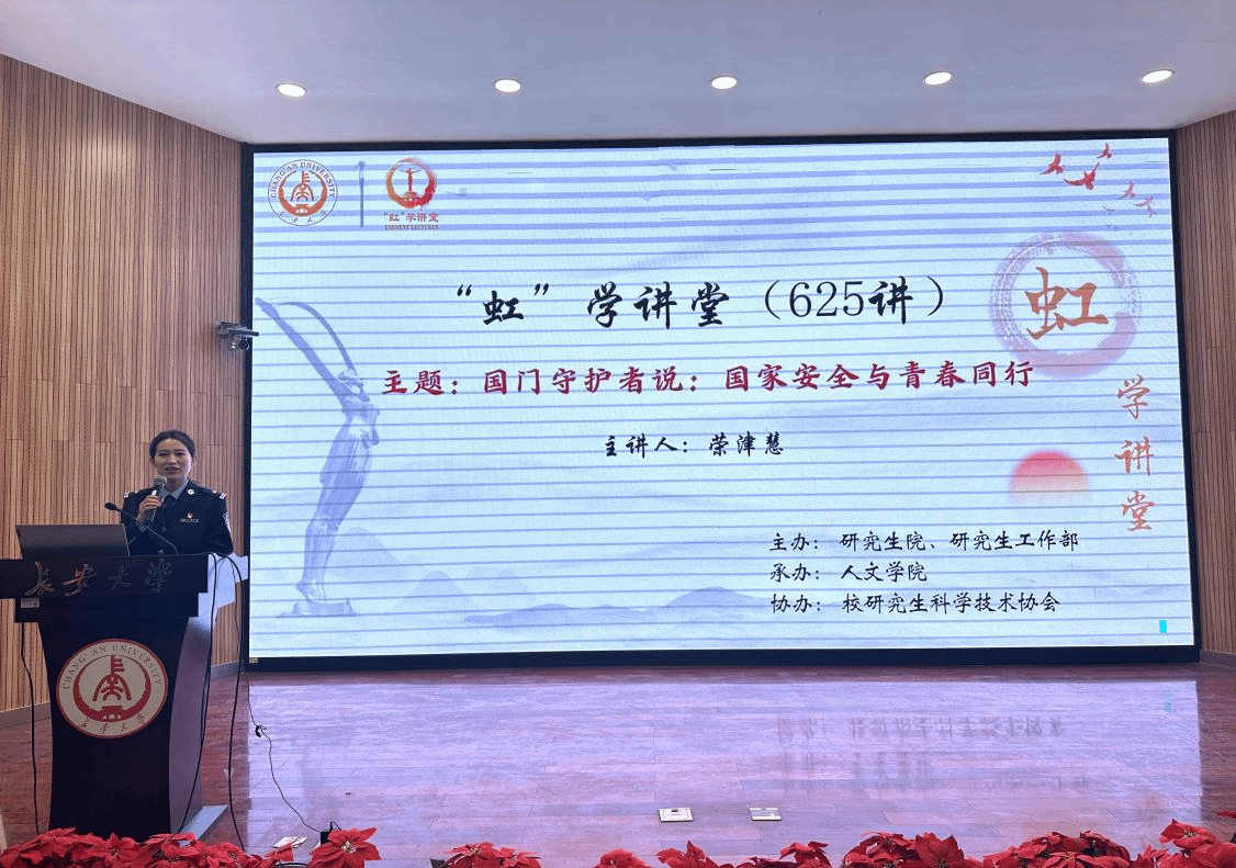 4月9日上午,由研究生院、研究生工作部主办,人文学院承办,校研究生科学技术协会协办的“虹”学讲堂第625讲在南校区东院伯声报告厅举办。陕西出入境边防检查总站警长荣津慧作题为“国门守护者说:国家安全与青春同行”的报告,人文学院胡锦玉副教授主持,相关学院共130余名师生参加讲座。