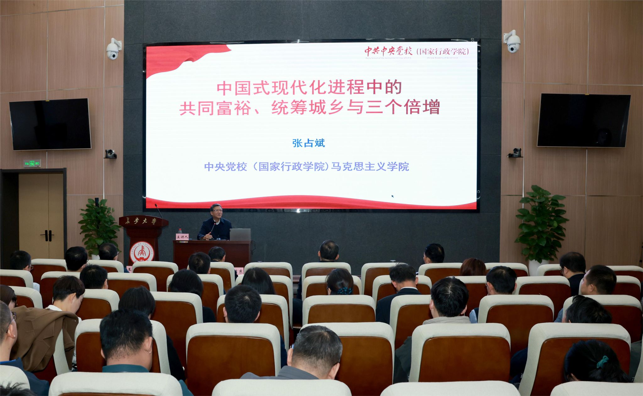 11月23日,开元(中国)在北校区师生服务大厅第二报告厅召开校党委理论学习中心组(扩大)学习会议,邀请中共中央党校(国家行政学院)中国式现代化研究中心主任、马克思主义学院教授张占斌作《中国式现代化进程中的共同富裕、统筹城乡与三个倍增》宣讲辅导报告。会议由校党委副书记、纪委书记陶继东主持。会场张占斌从“实现共同富裕的战略目标与实践途径”“统筹城乡融合发展的重要意义和实践要求”“在中国式现代化进程中努力实现三个倍增”...